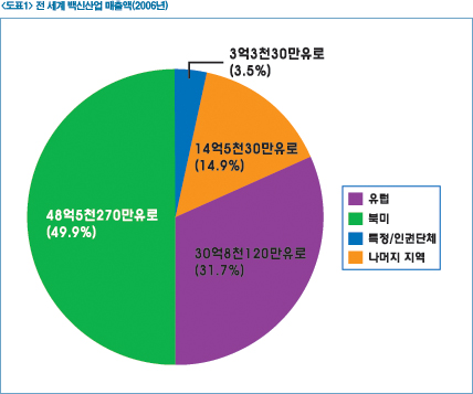 이병건 녹십자 부사장 Ⅰ. 국내 백신 현황 일반적으로 백신의 수요는 국가의 의무접종 프로그램에 의해 결정되며, 국내 시장의 경우 세계시장의 성장세와 유사하게 2000년 이후 연간 12%의 성장세를 보이고 있다. 접종 대상자 확대, 필수접종 전염병 지정 확대, 백신 접종률 상승, 새로운 질환에 대한 백신 개발, 난치성 질환인 암, 치매, 당뇨 등에 대한 치료백신의 상품화 등으로 2020년까지 지속적인 성장세가 예상된다. 국내 백신시장에는 녹십자, SK케미칼, 한국백신, LG생명과학, 보령바이오파마, CJ제일제당이 참여하고 있으며 외자