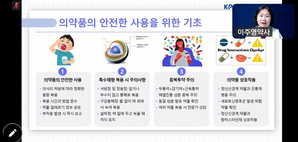 대한약사회(회장 권영희) 약바로쓰기운동본부(본부장 김보현, 이하 약본부)는 지난 27일 법무부 교정본부 내 신규 공중보건의를 대상으로 '교정시설에서의 의약품 안전사용' 교육을 온라인으로 진행했다고 밝혔다. 이번 교육은 약본부 이주영 단장이 강의를 맡아 △교정시설 내 약물 사용의 문제점 △의약품 안전사용을 위한 기초 △진통제의 이해와 분류 △교정시설에서의 오·남용 우려 약물 △전문의약품 공유·거래의 문제점 등을 중심으로 실제 사례와 함께 진행됐다. 법무부 관계자는 "공중보건의들이 강의자료를 캡처하는 등 강의에 대한 호응이 매우 높았다
