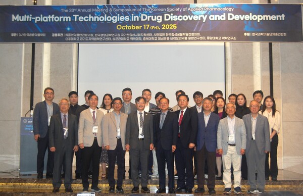 한국응용약물학회(회장 천영진, 중앙대학교 약학대학)는 지난 10월 17일 서울대학교 호암교수회관 삼성컨벤션센터에서 ‘멀티플랫폼 기술을 활용한 신약개발(Multi-platform Technologies in Drug Discovery and Development)’을 주제로 제33차 추계학술대회를 성황리에 마쳤다고 밝혔다.이번 학술대회는 한국응용약물학회가 주최하고, 식품의약품안전평가원, 한국생명공학연구원 국가전임상시험지원센터, (사)한국합성생물학발전협의회, 성균관대학교 약학대학, 아주대학교 경기도 지역협력연구센터, 중앙대학교 약학연구