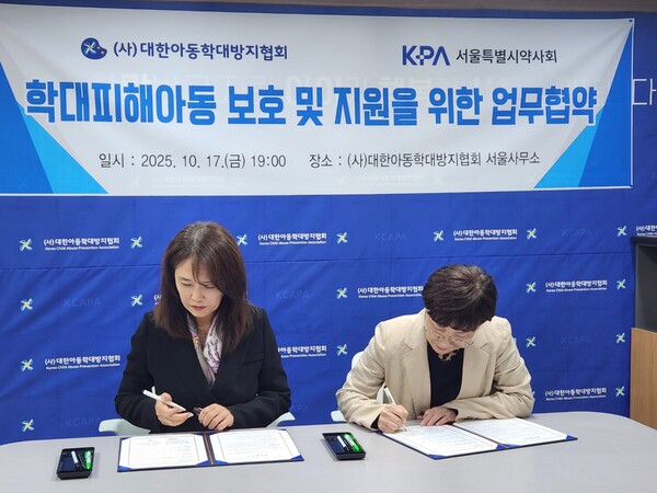 서울시약사회(회장 김위학) 여약사위원회(부회장 김영진, 위원장 김채윤)는 지난 17일, 대한아동학대피해방지협회(대표이사 공혜정)와 '학대피해아동 보호 및 지원을 위한 업무협약(MOU)'을 체결하고, 아동들의 건강 관리를 위한 상비약 키트를 전달했다고 밝혔다.이번 협약은 약사회의 전문성과 협회의 현장 네트워크를 결합하여, 위기 아동·청소년의 건강과 안전을 보호하고 지역사회 돌봄체계 구축을 목표로 한다.양 기관은 ▲학대 피해 아동의 건강 관리 및 의료 지원 연계 ▲약사 대상 아동 보호 인식 개선 교육 ▲지역사회 중심의 아동 안전망 구축