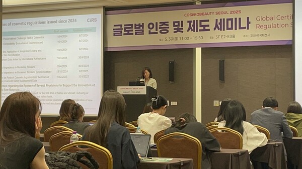 글로벌 규제 컨설팅 전문기업 CIRS 그룹이 5월 30일 서울 코엑스에서 열린 ‘글로벌 인증제도 및 수출전략 세미나’에서 중국 화장품 시장 진출을 준비하는 국내 기업들을 위해 중요한 발표를 진행했다. 이번 세미나에서 CIRS 중국 본사 퍼스널 & 홈케어 사업부의 April Guo가 연사로 나서, “중국 화장품 규제 최신 동향 및 한국 화장품 수출 전략”을 주제로 발표를 맡았다.April Guo는 “2024년 이후 새롭게 발표된 중국 국가약품감독관리국(NMPA)의 정책은 중국 진출을 희망하는 기업들에게 반드시 숙지해야 할 사항들”이라