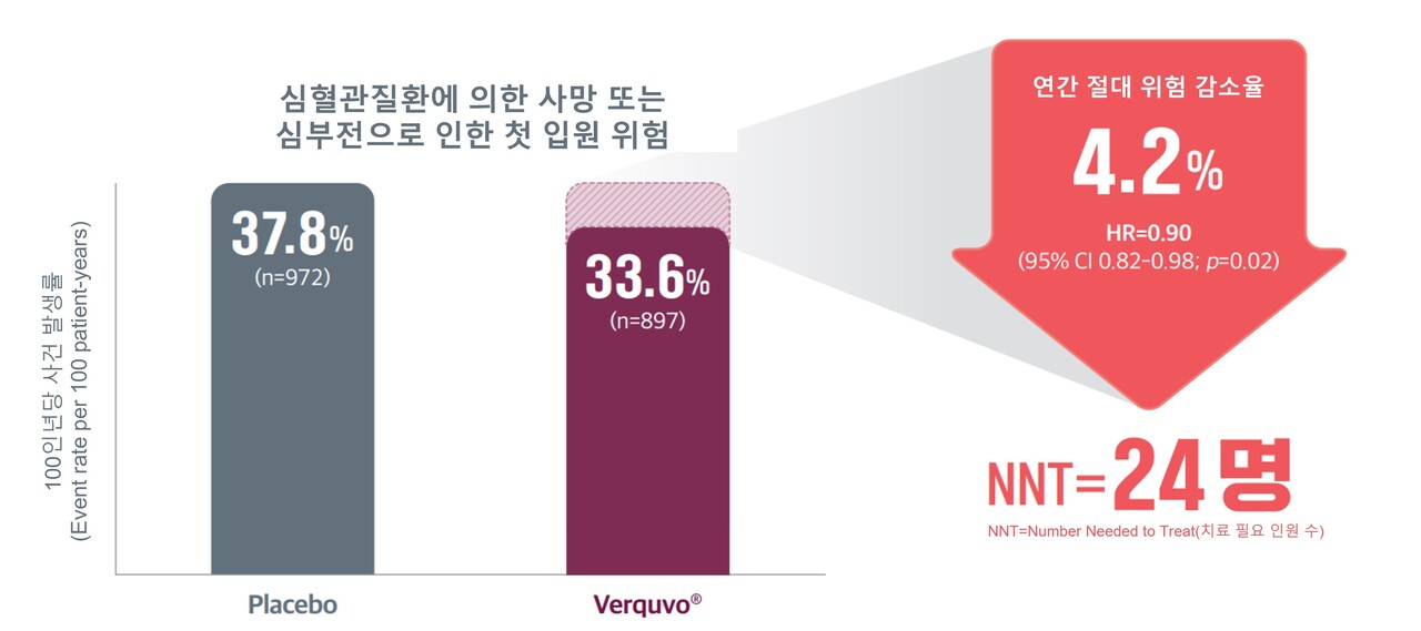 2021년 11월 한국에서도 허가된 베르쿠보(베리시구앗)는 국내 심부전 치료에 큰 역할을 할 것이란 기대를 받으며 보험 급여 적용(2023년 9월)을 이뤘다. 기대는 현실이 됐다.레닌-안지오텐신-알도스테론 시스템을 표적으로 하는 약물(ACEI, ARB, ARNI, MRA), SGLT-2 억제제, 베타 차단제, 이뇨제 등과 다른 기전을 가진 베르쿠보는 기존 치료제 대비 만성 심부전으로 인한 입원과 증상 악화를 예방할 수 있는 능력을 분명히 보였다.최근 심부전 치료에서 중요한 목표는 질환 악화를 줄이는 것이다. 입원 뿐 아니라 외래에서