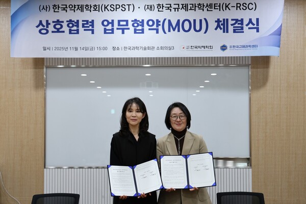 한국규제과학센터(센터장 박인숙, 이하 센터)와 한국약제학회(회장 조혜영)는 지난 14일 서울 강남구 한국과학기술회관에서 한국의 규제과학 및 제약바이오 산업 발전을 위한 업무협약을 체결했다.이번 업무협약의 주요 내용은 ▲양 기관 주최 학술행사 상호 참석을 통한 인적 교류 ▲공동 세미나·심포지움·연구발표회 개최를 통한 학술교류 ▲학술자료·보고서·간행물 등 정보 교환 ▲글로벌 경쟁력 제고를 위한 국내외 네트워크 구축 등이다.양 기관은 이번 협약을 통해 다양한 인적·학술·정보 교류를 기반으로 상호 신뢰와 협력 토대를 구축함으로써, 한국 제