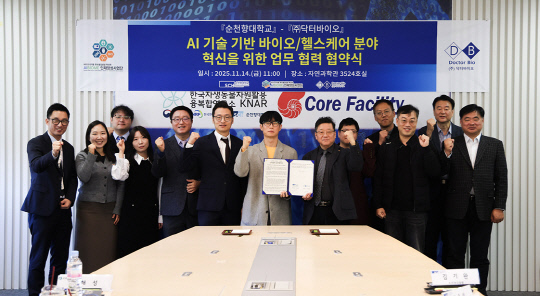 순천향대학교 AIBIOME인재양성사업단(단장 이용석)은 ㈜닥터바이오(대표 하명원)와 AI의료 융합기술 기반 바이오·헬스케어 분야 혁신을 위한 업무협약을 체결했다고 16일 밝혔다.이번 협약은 교육부와 한국산업기술진흥원이 지원하는 첨단분야 특성화대학 사업의 일환으로 추진됐으며 두 기관은 바이오 실험·연구 분야의 디지털 전환과 인공지능(AI) 기반 실험·분석 생태계 구축에 협력키로 했다.이용석 순천향대 AIBIOME인재양성사업단장은 "이번 협약은 AI를 기반으로 한 바이오의약품 후보물질 발굴 이후 효능평가, 최적화, 품질관리(QC) 단계