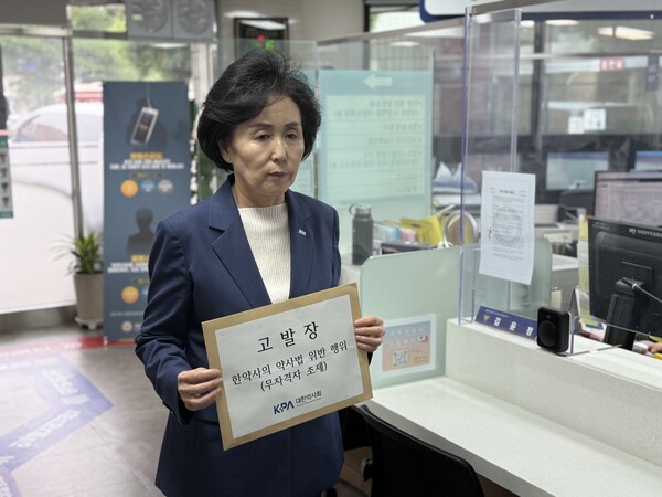 대한약사회(회장 권영희)는 일부 한약국에서 약사가 부재한 시간대에 한약사가 직접 조제하거나 복약지도를 하는 불법행위가 확인됐다며, 해당 사례들을 즉각 고발 조치했다고 16일 밝혔다. 대한약사회 권영희 회장과 집행부 임원들은 16일 강북경찰서를 방문해 무자격 조제 행위가 의심되는 한약사를 고발했다.권영희 회장은 "제41대 집행부 출범 직후 구성된 '한약사 문제 해결을 위한 TF'는 전국 한약국을 모니터링해 한약사가 약사를 고용해 처방조제를 하는 현황을 점검했다"라고 전했다.이어 "그 결과, 복수의 한약국에서 약사가 없는 시간에 한약사
