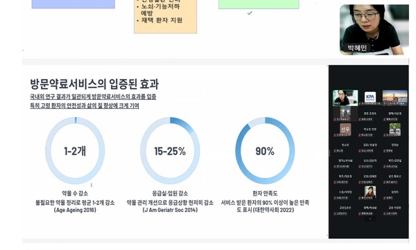 경기도약사회(회장 연제덕) 통합돌봄위원회(부회장 윤선희, 위원장 백민옥)는 16일 통합돌봄사업 관련 제3차 교육을 온라인으로 개최했다고 밝혔다. 이번 교육은 방문진료 서비스에 대한 이해와 방문약료서비스 협업 방안을 주제로 진행됐으며, 일산병원 일차의료개발센터 박혜민 가정의학과 교수가 강연을 맡았다. 강의에서는 ▲방문약료의 필요성과 개념 ▲방문약료 시행의 어려움과 시스템 한계 ▲재택의료 사례를 통한 방문약료 도입 방안 ▲국민건강보험공단의 다제약물 관리 모형 ▲주치의 사업 기반 다제약물 방문약료 등이 다뤄졌다. 백민옥 위원장은 "한 시