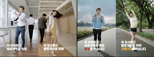 얼마 전 종영한 KBS 드라마 ‘넝쿨째 굴러온 당신’에 출연한 이희준(천재용 역)과 김서형(천재용 첫째 누나 역)이 한독약품(대표 김영진)의 건강기능식품 브랜드 네이처셋 광고에서 다시 만났다. 한독약품은 “이희준은 광고에서 피로회복을 위해 홍삼을 먹는 ‘홍삼남’으로 특유의 유쾌함과 진지함을 모두 보여주며 대세남의 면모를 과시했다”고 소개했다. 또 “김서형은 혈행개선을 위해 오메가3를 먹는 ‘오메가3녀’로 등장한다”며 “이지적인 외모로 카리스마 넘치는 차도녀의 모습을 보여주면서 탄력 있는 S라인을 뽐냈다”고 밝혔다. 이번 TV CF는