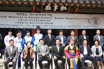 수원시한의사회(회장 윤성찬)가 주관하고 수원시가 주최하는 ‘화성 행궁, 역사 속 한의약 체험’ 행사가 지난 5월 8일을 시작으로 5월과 6월, 9월과 10월, 총 4달 동안 매주 일요일 오후 1시 30분부터 오후 5시까지 화성행궁 집사청에서 열린다. 이번 행사에는 의관 전통복장을 한 수원시한의사회 소속 한의사들이 의녀로 분한 경기 간호조무사회 회원들과 함께 국내외 관광객들을 대상으로 진맥, 침 시술, 한약 처방 등 한방 무료진료를 실시하며 한방차 시음, 약첩 싸기, 약재 전시 등의 다채로운 체험 프로그램도 진행할 예정이다. 동 체험