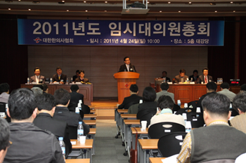 대한한의사협회(회장 김정곤)는 24일 오전 10시 협회 회관 5층 대강당에서 2011년도 임시대의원총회를 개최하고 회장 직선제 정관 개정안에 대해 논의한 결과 일사부재의의 원칙에 따라 상정될 수 없다는 데 의견을 모았다. 이날 한의협은 현행 ‘부결된 의안은 같은 대의원의 임기 중에 다시 발의하거나 제출할 수 없다’는 일사부재의의 원칙을 ‘차기 총회 전에는 다시 발의하거나 제출할 수 없다’로 수정, 의결했다. 이에 따라 회장 및 수석부회장에 대한 직선제 정관 개정안은 정식 안건으로 채택되지 못했다. 또한 당초 의안으로 상정될 예정이었