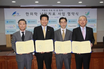 인천광역시한의사회(회장 임치유)가 지난 14일 인천시청에서 인천광역시와 인천일보, 대한건설협회 인천광역시회와 ‘저출산 극복 민ㆍ관 협력 한의학 난임치료 사업’ 업무 협약(MOU)을 체결했다. 총 2억 원의 예산이 투입될 이번 사업은 난임 예방과 치료에 우수한 한의약을 활용하여 난임 여성의 임신과 출산을 돕기 위해 마련됐다는 대한한의사협회 측의 설명이다. 이날 체결된 업무협약에 따라 오는 4월부터 6월까지 1년 이상 임신에 어려움을 겪고 있는 가임 여성 100명을 대상으로 주 3회 침, 뜸, 약침 시술 등 한의약 치료가 실시될 예정이