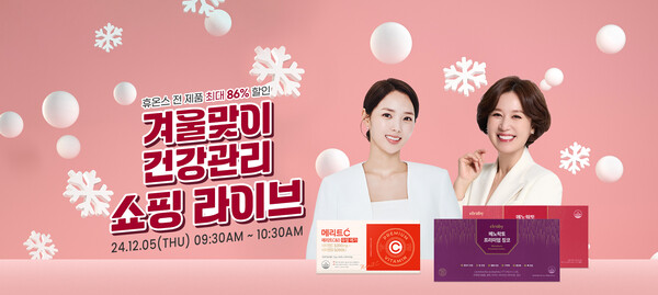휴온스가 연말을 맞아 인기 건강기능식품을 할인 판매한다.휴온스(대표 송수영, 윤상배)는 인기 건기식 제품을 특별 할인가에 제공하는 네이버 라이브방송을 이달 총 4회 실시한다고 4일 밝혔다.휴온스는 한 해를 마무리하는 시기에 고객의 큰 성원에 감사의 마음을 담아 이번 행사를 기획했다고 설명했다.네이버 라이브 방송은 오는 5일 ‘겨울맞이 건강관리 특가’를 시작으로, 15일 ‘네이버 홀리데이 선물대첩’, 17일 ‘Good Bye 2024 연말감사제’가 각각 오전 9시 30분부터 진행된다. 또 ‘크리스마스 특집’은 오는 23일 오전 10시