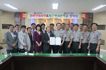 전라북도한의사회(회장 김병훈)는 최근 육군 부사관학교와 의료봉사에 관한 협약식을 갖고 육군 부사관학교 내에 한의 의무실을 마련, 개소식을 개최했다. 전라북도한의사회는 지난 2009년 7월부터 지난 6월까지 1년간 전북 익산시 여산면 소재 육군 부사관학교에서 총 58명의 한의사들이 참여해 실시한 24회의 한의의료봉사를 통해 1천여 명에 달하는 부사관 후보생들의 통증질환, 관절질환, 운동기계질환 등을 한의치료로 치료한 바 있다. 하지만 현재 육군 부사관학교 내에는 양방 진료소만 설치돼 있어 한의치료를 받고자 하는 후보생들은 논산 의무대