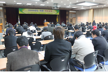 대한한의사협회(회장 김현수)는 지난 4일 오후 2시부터 협회 대강당에서 ‘2009년도 직원 직무교육’을 실시, 불법 한방의료행위 근절을 위해 다양한 홍보활동을 전개해야 한다고 강조했다. 중앙회를 비롯해 16개 시도지부 및 분회 직원 100여명이 참석한 가운데 열린 이날 직무교육에서 김현수 회장은 “어려움 속에서도 협회와 한의계 발전을 위해 힘써주는 모든 임직원에게 감사를 표한다”며 “이번 교육을 그 동안 함께 나누고 싶던 사항들에 대해 공감대를 형성하는 시간으로 만들어 나가길 기대한다”고 밝혔다. 이어 김 회장은 “불법 침이나 뜸