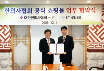 대한한의사협회(회장 김현수)는 지난 4일 (주)엠서클(대표이사 오시훈)과 협회 명예회장실에서 ‘한의사몰’ 구축 및 운영을 위한 업무협약을 체결했다. 한의사몰은 한방의료기관에서 사용하는 의료소모품 등을 전문적으로 판매하는 한의사만을 대상으로 한 인터넷 쇼핑몰로, 대한한의사협회 전자상거래 운영위원회(위원장 김인범 부회장)를 통해 (주)엠서클이 ‘한의사몰’ 운영회사 1순위로 선정된 바 있다. 이번 업무협약을 통해 (주)엠서클은 내년 1월 중으로 ‘한의사몰’ 사이트를 구축, 계약기간 4년 간 운영 독점권을 갖게 된다. 김현수 회장은 “한의
