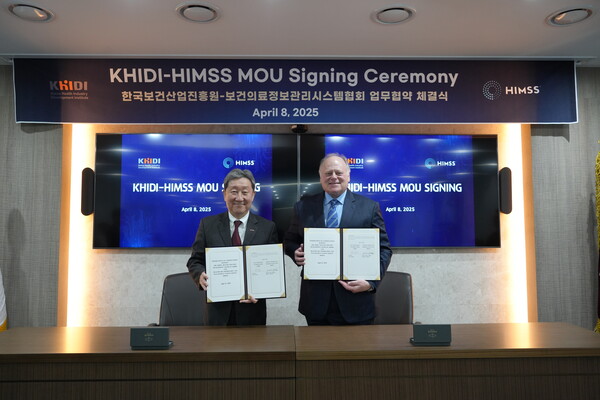 한국보건산업진흥원(원장 차순도, 이하 진흥원)은 4월 8일(화) 충북 오송 본원 국제회의실에서 글로벌 디지털헬스 전문기관인 보건의료정보관리시스템협회(HIMSS(Healthcare Information and Management Systems Society), 이하 HIMSS)와 업무협약(MoU)을 체결했다.이번 협약을 통해 양 기관은 △한국 디지털헬스 생태계 구축 및 성숙도 증진 △디지털헬스 정보 및 경험 공유 △디지털헬스 관련 국제 행사 분야에서 서로 협력하기로 하였다. 특히, 올해는 한국 디지털헬스 생태계 구축 및 성숙도 증진