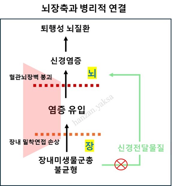 뇌-장축(Gut-Brain Axis)의 개념과 역할뇌-장축(brain-gut axis)은 장과 뇌 사이의 이중 방향 소통 네트워크를 의미하며, 이를 통해 장과 뇌는 서로 밀접하게 영향을 주고받습니다. 이 축은 신경계, 면역계, 호르몬계를 포함하며 장내미생물군총(gut microbiota)이 중요한 조절자로 작용합니다.뇌-장축은 감정, 스트레스, 면역 반응, 대사 활동 등 여러 신체적, 정신적 과정에 관여하며, 특히 뇌 건강 및 인지 기능에도 중요한 영향을 미칩니다.최근 연구들에 따르면 장내미생물군총이 신경전달물질의 생합성과 염증성