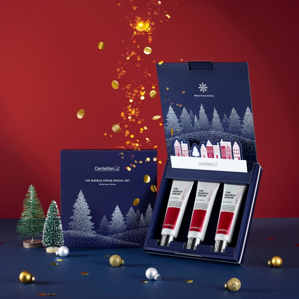 동국제약이 특별한 패키지와 함께 최신상 ‘더 마데카 크림’ 담아 겨울철 각종 피부 고민 솔루션 제공한다.동국제약의 센텔리안24는 다가오는 연말을 맞아 한정판 ‘화이트 스노우 에디션’을 출시한다고 8일 밝혔다.화이트 스노우 에디션은 센텔리안24의 대표 제품인 마데카 크림으로 구성된 스페셜 세트 상품이다. 연말을 맞아 선보이는 한정판 제품인 만큼 최신상 ‘더 마데카 크림’(마데카 크림 시즌6) 본품 3개 입으로 넉넉히 구성해 겨울철 각종 피부 고민을 집중적으로 케어할 수 있도록 했다.특히 한정판으로 선보이는 이번 패키지 디자인은 새하얀