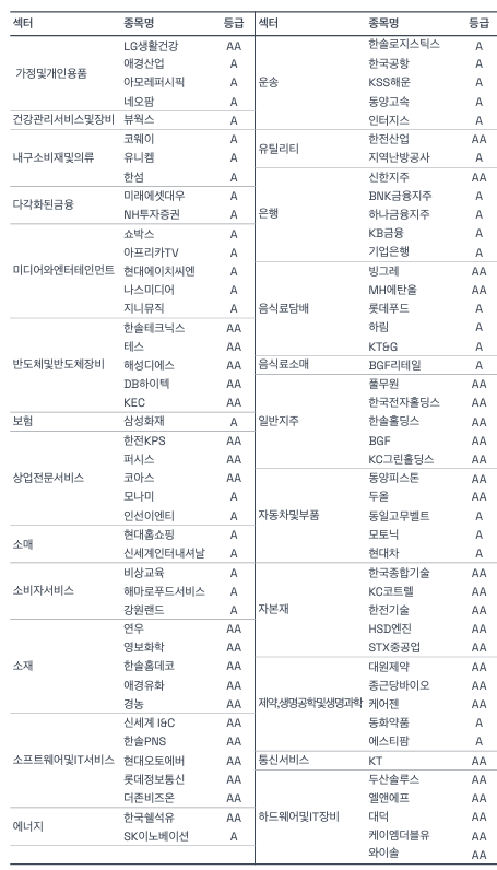 LG생활건강이 지난해에 이어 올해도 ESG 평가 AA 등급을 획득했다. 아모레퍼시픽과 애경산업도 A 등급을 획득했으며, 네오팜도 A 등급으로 이름을 올렸다.서스틴베스트는 최근 기업의 ESG 경영활동에 대해 분석한 2020 상장기업 ESG 분석 보고서를 발표했다.보고서는 매년 3월 31일 기준 KOSPI 및 KOSDAQ 종목 52주 평균 시가총액 기준 상위 800개 종목으로 평가한다. 다만 평가 기간 내 평가대상 기업 중 상장폐지나 관리종목 선정 등 이슈가 발생한 경우 평가기업에서 제외한다. 하반기 평가는 기본적으로 평가대상 기업군을
