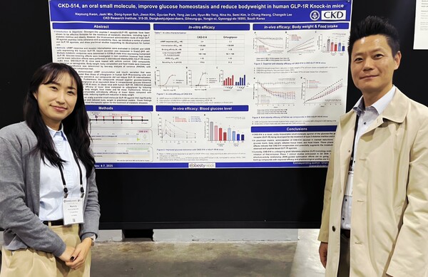 종근당(대표 김영주)은 최근 미국에서 열린 주요 국제 학회에서 항암 및 대사질환 분야의 주요 파이프라인 연구 성과를 포스터 세션을 통해 발표했다고 10일 밝혔다. 지난 2일 미국 샌디에이고에서 열린 'World ADC 2025'에서는 항체-약물 접합체(ADC) 기반 항암 신약 후보물질 'CKD-703'의 비임상 연구 결과가 공개됐다.CKD-703은 종근당이 독자 개발한 간세포성장인자 수용체(c-Met)를 타깃으로 하는 단일클론항체에 차세대 ADC 플랫폼 기술을 적용해 개발 중인 약물로, 암세포를 선택적으로 사멸시키는 기전을 지닌다.