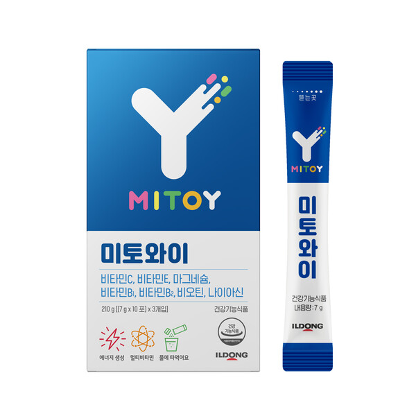 일동제약(대표 이정치)은 건강기능식품 사업 부문에서 강남세브란스병원 소아청소년과 이영목 교수와 공동 개발한 에너지 멀티비타민 '미토와이(MITO-Y)'를 출시했다고 10일 밝혔다.이번 제품은 이영목 교수의 제안을 바탕으로 에너지 생성과 근육 기능에 초점을 맞춰 설계됐다. 일동제약은 원료의 기능적 조합과 함량 비율을 최적화해 체내 에너지 대사와 근육 기능 유지에 도움을 줄 수 있도록 개발했다고 설명했다.'미토와이'에는 ▲에너지 생성 및 대사에 필요한 비타민 B군 4종(비타민 B1·B2, 나이아신, 비오틴), ▲신경과 근육 기능 유지