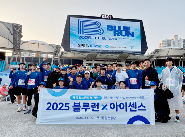 글로벌 바이오센서 전문기업 주식회사 아이센스(대표이사 차근식, 남학현)가 세계 당뇨병의 날(11월 14일)을 기념해 지난 9일 성남 탄천종합운동장에서 열린 ‘2025 블루런’ 마라톤 대회에 참여했다고 밝혔다.이번 행사는 (사)한국당뇨협회(이하 한국당뇨협회)와 스포티비뉴스가 주최·주관하고 보건복지부가 후원했으며, 당뇨병 예방 및 관리에 대한 국민적 관심을 높이기 위해 마련됐다. 아이센스는 올해 블루런에서 단순 참여를 넘어 ‘달린 거리만큼 당뇨 환우에게 희망을’이라는 주제로 임직원 참여형 사회공헌(CSR) 캠페인을 함께 전개했다.이번