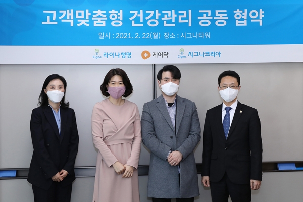케어닥(대표 박재병)이 라이나생명(대표이사 조지은), 시그나코리아(대표이사 김양호)와 22일 종로 라이나생명 본사 시그나타워에서 시니어 헬스케어 서비스 제공 및 확대를 위한 업무협약을 체결했다.회사 측에 따르면 이번 협약을 통해 건강증진형 보험 서비스 연구 및 개발을 비롯해 건강 관리 서비스 제공 및 요양 시설 정보 그리고 간병 서비스를 제공할 계획으로, 라이나생명과 시그나코리아 고객은 케어닥이 제공하는 전국 4만여 개 요양 시설 정보를 제공받을 수 있게 된다.또 케어닥은 올해 하반기 라이나생명과 시그나코리아 고객을 대상으로 시니어