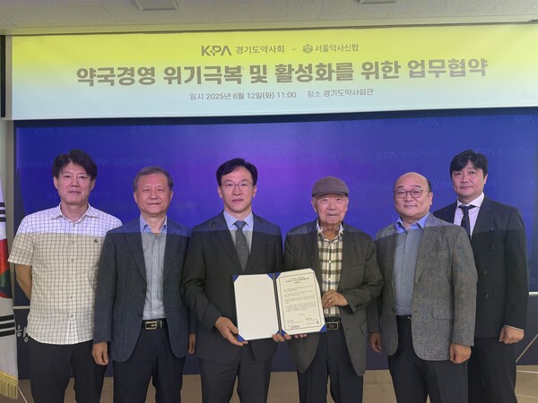 경기도약사회(회장 연제덕)와 서울약사신협(이사장 조택상)이 약국경영 위기극복 및 활성화를 위한 업무협약을 12일 체결했다고 밝혔다.이날 체결된 협약의 주요 내용을 요약보면 △ 지속되는 경기침체와 변화하는 약업 환경으로 인한 약국경영 지원을 위한 금융거래시 우대금리 적용 △ 소규모 약국 연합을 통한 의약품 Buying Power 극대화(가격경쟁력 강화)에 있다고 할 수 있다.이날 협약식에서 연제덕 회장은 “이번 협약을 통해 약사 회원들이 한층 다양한 서비스를 누리고 특히, 소규모 약국의 경영 활성화에 도움이 되도록 최선을 다하겠다”라