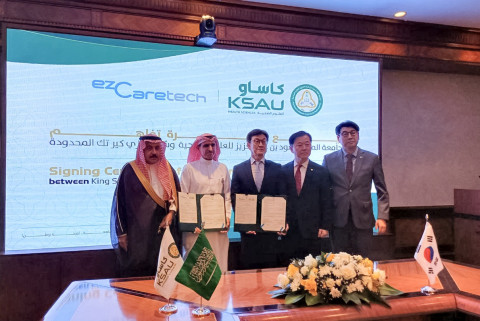 국내 1위 디지털 헬스케어 전문기업인 이지케어텍(대표이사 홍우선)이 지난 3일(월) 사우디아라비아 Top5 수준의 킹 사우드 빈 압둘아지즈 보건과학대학(KSAU-HS)과 양해각서(MOU)를 체결했다. 이지케어텍과 KSAU-HS는 디지털 헬스케어 연구소를 설립하고 의료진과 학생 대상 교육 프로그램을 개설하기로 했다. 디지털 헬스케어 플랫폼도 구축해 의료 인공지능(AI) 및 데이터 분석을 추진한다. 특히 디지털 헬스케어 연구소에는 이지케어텍의 HIS 베스트케어(BESTCare)가 기증돼 사우디 최고의 의대생들이 한국의 솔루션으로 실습을