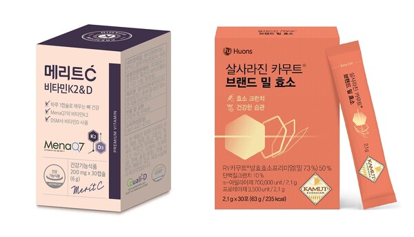 휴온스(대표 송수영, 윤상배)가 신제품 2종 출시를 기념하는 프로모션을 진행한다.휴온스는 뼈 건강 관련 건강기능식품 ‘메리트C 비타민K2&D’와 한국인의 식습관을 고려한 프리미엄 효소 제품 '살사라진 카무트® 브랜드 밀 효소'를 출시했다고 21일 밝혔다.‘메리트C 비타민K2&D’는 휴온스 비타민 브랜드 ‘메리트C’ 라인 신제품이다. 연질캡슐 안에 뼈의 구성에 필요한 ‘비타민K2’와 ‘비타민D’를 함유한 제품이다. 비타민D는 칼슘과 인이 흡수되고 이용되는 데 필요, 뼈의 형성과 유지에 필요, 골다공증 발생 위험 감소에 도움을 준다.