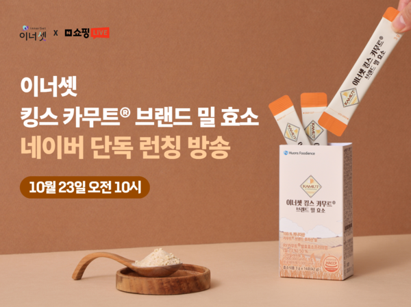 휴온스푸디언스(대표 손동철)의 건강기능식품 브랜드 '이너셋’이 '킹스카무트 브랜드밀 효소'를 출시하고, 이를 기념한 네이버 쇼핑라이브를 진행한다고 22일 밝혔다.신제품 ‘이너셋 킹스카무트 브랜드밀 효소’는 100% 캐나다산 정품 '카무트 브랜드 호라산 밀'을 발효해 만든 순수 발효 효소다. 살아있는 생균 5종(젖산균, 락토바실러스 카제이, 락토바실러스 플란타룸, 바실러스 아밀로리퀴페시언스, 바실러스 코아귤런스 등)을 더했다.또 탄수화물의 섭취량이 높은 한국인의 식습관을 고려해 'C.G.G.D 인증(카제인, 글루텐, 글라이든 분해능