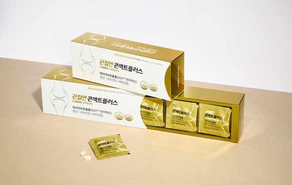 파마리서치(대표 강기석, 김신규)는 이달 초, 약국 전용 관절 건강기능식품 ‘관절엔 콘액트플러스’를 출시했다고 밝혔다.‘관절엔 콘액트플러스’는 관절 건강에 도움을 줄 수 있는 건강기능식품이다. 주원료인 ‘연어이리추출물(DOT™ 연어핵산)’은 연어의 생식세포에서 추출한 물질이다. 특히 파마리서치만의 DOT(DNA 최적화) 기술을 통해 75% 이상의 고순도 핵산을 추출한 것이 특징이며, 망간, 비타민D3, 비타민B2를 함유해 관절 건강부터 뼈 건강까지 일상 속에서 관리가 가능한 토탈케어 제품이다. 새롭게 선보이는 ‘관절엔 콘액트플러스’