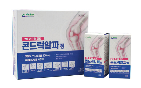 알리코제약㈜(260660)이 관절 건강에 필요한 콘드로이틴이 함유돼 있는 일반의약품 "콘드럭알파정"을 출시했다고 16일 밝혔다.콘드럭알파정은 콘드로이틴 뿐만 아니라 비타민 B군과, 비타민D를 함유하고 있어 관절 통증과 육체피로를 한번에 관리할 수 있는 복합 관절영양제이다.콘드럭알파정은 일반의약품 최대 함량인 800mg의 콘드로이틴을 포함하고 있어 연골 보호와 관절 통증 완화에 효과적이며, 비타민 B1, B2, B3, B6로 구성된 비타민 B군 복합체가 신체 에너지 대사를 촉진한다. 또한 비타민 D가 뼈 건강을 강화해 골다공증 예방에