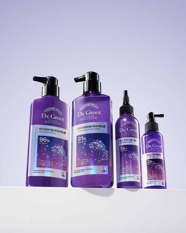 LG생활건강의 프로페셔널 더마 두피케어 브랜드 ‘닥터그루트’가 ‘마이크로바이옴 바이오엑소좀’ 라인을 새로 출시했다.닥터그루트는 2017년 3월 브랜드 론칭 이후 7년 연속 탈모 샴푸 1위를 기록하며 탈모와 두피 케어 시장을 선도해왔다. 이번에는 기존 마이크로바이옴 라인을 업그레이드한 2세대 바이오엑소좀 라인을 선보이며 새로운 도전과 변화에 나섰다.대표 제품인 ‘닥터그루트 마이크로바이옴 바이오엑소좀 샴푸’에는 화제의 스킨케어 성분인 비폴렌(Bee pollen·벌 화분) 엑소좀 4만 개와 유산균 발효 용해물 1억 개 등을 조합한 바이오