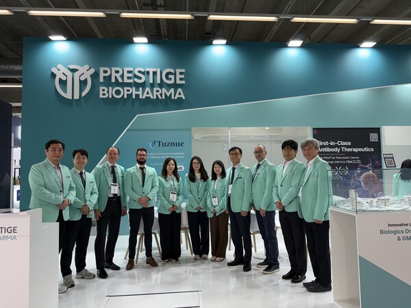 프레스티지바이오파마그룹(Prestige Biopharma Group, 이하 ‘회사’)은 10월 28일부터 30일까지 독일 메쎄 프랑크푸르트(Messe Frankfurt)에서 열린 세계 최대 제약바이오 전시회 ‘CPHI Worldwide 2025’ 참가를 마쳤다고 4일 밝혔다.회사는 이번 전시회에서 글로벌 제약사 테바(Teva Pharmaceutical Industries)와 함께 항암 바이오시밀러 투즈뉴(Tuznue®)의 유럽 공식 론칭을 발표했을 뿐만 아니라 글로벌 제약바이오 회사 및 관련 관계자들이 프레스티지바이오파마의 항체 기