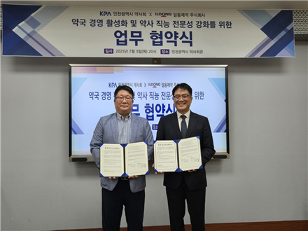 인천광역시약사회(회장 윤종배)는 일동제약 주식회사(대표이사 윤웅섭)와 ‘약사(藥師)가 운영하는 약국의 경영 활성화 및 약사 직능 강화’를 위한 업무협약(MOU)을 체결했다고 4일 밝혔다.금번 협약을 통해 인천광역시약사회와 일동제약은 제품 공동 개발을 세부 협약 내용으로 협의하였다. 약사회 전용 제품 개발은 그간 많은 지부와 제약사를 포함한 여러 업체들이 시도해 왔지만 계속 적으로 불발되었던 숙원사업으로 해당 사업이 본격화된 것은 이번이 처음이다.양 기관은 이번 협약을 통해 ▲약사의 역량과 전문성 강화를 근간으로 하는 약국 경영 활성