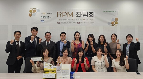 파마리서치(대표 강기석, 김신규)는 지난 24일 판교 사옥에서 수도권 약사 약 10명과 함께 '리쥬비네이션 파머시 마케팅'(이하 'RPM','Rejuvenation Pharmacy Marketing') 좌담회를 개최했다고 밝혔다.이번 좌담회는 출시 예정에 있는 ‘관절엔 콘액트플러스’의 마케팅 방향과 전략과 아울러 약국에서 판매되는 ‘리안 점안액’, ‘리쥬비넥스크림’ 등 일반의약품의 다양한 판매 전략을 모색했다. 특히 ‘관절엔 콘액트 플러스’는 파마리서치의 독자적 기능성 원료인 ‘연어이리추출물(DOT™ 연어핵산 : 관절 건강에 도움을
