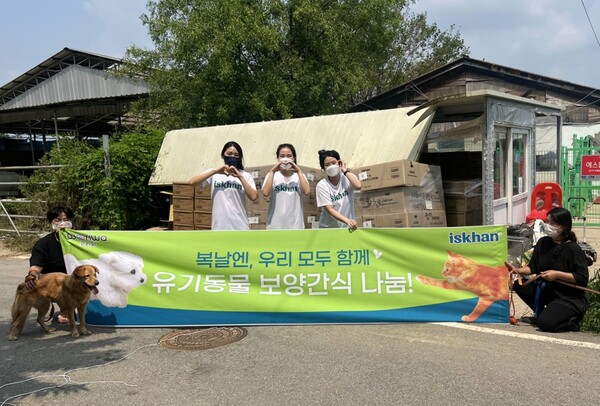 우리와주식회사(이하 우리와㈜)의 국내 최초 생육 펫푸드 브랜드 이즈칸(iskhan)이 말복을 맞이해 지난 13일, 유기동물들의 건강한 여름 나기를 위한 기부를 진행했다고 밝혔다.사람에 비해 땀샘도 적고 털로 둘러싸여 더위에 취약한 동물들에게 여름은 힘든 계절이다. 특히 좁은 공간에 많은 아이들이 함께 지내고 있는 유기동물들에게는 더욱 고통스러운 계절로 면역력 저하로 인한 질병도 많이 발생하는 만큼 충분한 영양 섭취가 중요하다. 우리와㈜의 생육 펫푸드 브랜드 이즈칸은 말복을 맞아 유기동물들이 건강하게 여름을 보낼 수 있도록 ‘이즈칸