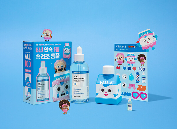 휴젤㈜이 자사 클리니컬 더마 코스메틱 브랜드 ‘웰라쥬(WELLAGE)’와 인기 TV애니메이션 ‘브레드이발소’가 콜라보한 한정 기획세트를 출시한다. 오는 2월 1일부터 14일까지 무신사에서 단독 선론칭, 특별 할인가로 판매한다.브레드이발소는 이발소를 배경으로 한 재치 있고 탄탄한 스토리의 국내 애니메이션으로, 다양한 캐릭터들이 등장해 어린아이는 물론 MZ세대까지 전 연령층에서 인기를 끌고 있다.웰라쥬X브레드이발소 콜라보 한정 기획세트는 ▲리얼 히알루로닉 블루 100 앰플 100ml ▲ 리필 75ml ▲스티커로 구성됐다. 리필 패키지