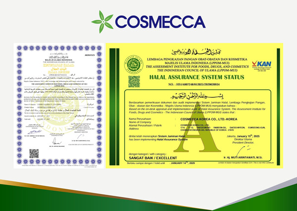 코스메카코리아(대표이사 조임래)가 인도네시아 최고 권위의 할랄 인증 기관인 무이(MUI, Majelis Ulama Indonesia)로부터 할랄 인증을 획득했다고 3일 밝혔다.무이 할랄 인증은 이슬람 국가에서 가장 높은 신뢰도를 갖춘 인증 중 하나로, 엄격한 심사 절차와 기준을 기반으로 한다. 인도네시아는 할랄 보증법에 따라 할랄 인증 의무화를 시행하고 있으며, 특히 인도네시아로 수출되는 화장품은 2026년 10월 17일부터 할랄 인증 의무화가 본격적으로 시행될 예정이다.코스메카코리아는 이번 인증을 통해 인도네시아를 비롯한 아세안