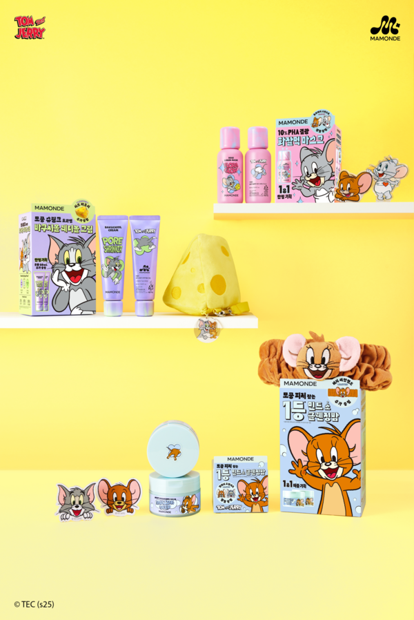 아모레퍼시픽 브랜드 마몽드(MAMONDE)가 워너브러더스와 협업을 통해 '톰과 제리' 캐릭터 한정판 컬렉션을 선보인다.워너브러더스의 인기 애니메이션 캐릭터인 톰과 제리는 1940년 첫 등장 후 친근한 라이벌 관계와 끝없는 장난기로 애니메이션 역사상 가장 사랑받는 코미디 듀오 중 하나가 되었으며, 세대를 초월해 전 세계 어린이와 어른들에게 즐거움을 전하고 있다. 이번 협업은 톰과 제리 85주년을 기념한 특별한 만남으로, 물고 물리는 '각질, 피지, 모공 고민을 잡기 위한 톰과 제리 에디션의 대모험'이라는 콘셉트로 기획했다. 캐릭터들이