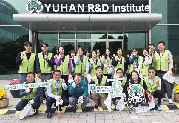유한양행(대표이사 조욱제)은 지난 10월 20일부터 21일까지 양일간 점심시간을 활용한 '런치타임 플로깅'을 진행했다고 밝혔다. 유한양행이 임직원 및 가족을 대상으로 운영 중인 '플로깅 캠페인'은 2022년부터 시작된 환경 사회공헌활동으로, '버들생명 플로깅'이라는 이름 아래 임직원과 가족이 생활 쓰레기를 수거해 연간 환경 목표를 달성하면 소아암 환자 치료비를 지원하는 창립기념 프로그램이다. 이번에 진행된 '런치타임 플로깅'은 본사, 연구소, 공장 등 3개 사업장 직원 67명이 점심시간을 이용해 참여했으며, 2024년 처음 실시된