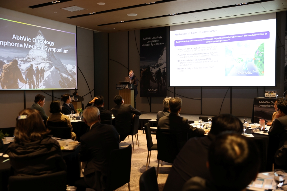 한국애브비(대표이사 강소영)는 지난 24~25일 애브비 림프종 서밋(AbbVie Lymphoma Summit)을 열어 최신 림프종과 백혈병 치료 트렌드, 임상 연구 결과를 공유했다고 밝혔다.올해 서밋은 애브비의 혁신 치료제를 기반으로 한 혈액암 치료의 최신 전략을 논의하기 위해 마련됐다. 행사에는 국내 혈액암 전문가 50여 명 이상이 온∙오프라인으로 참석했다. 서밋의 의미는 '림프종은 알프스(Alps) 산맥 만큼 정복하기 어렵다'는 의미에서 지었다. 지속적인 연구 개발을 통해 정복해나가겠다는 의미도 담고 있다.첫날 재발성 또는 불응