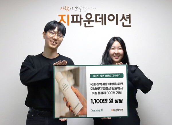 HLB는 최근 국제개발협력NGO ‘지파운데이션’에 1100만원 상당의 여성청결제를 기부했다고 밝혔다.이번 협찬은 취약계층 아동 및 청소년을 위한 ‘초경키트’ 제작을 위해 진행됐으며, 완성된 초경키트는 200여 명의 소녀들에게 전달됐다.HLB는 소녀들이 건강한 월경기간을 보낼 수 있도록 지원하기 위해 이번 기부에 참여했다. 기부된 제품은 페미닌 케어 브랜드 ‘이너생각’의 베스트셀러 여성청결제인 ‘이너생각 밸런싱 휩드 워시’로, 안전한 자연 유래 원료를 사용해 성인 여성은 물론 4세 이상의 어린 아이까지 사용 가능한 제품이다.남윤제 H
