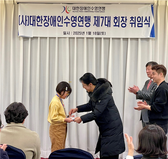 수영팀 ‘수영하자’가 장애인수영연맹에 기부금을 전달했다. 장애인체육 활성화에 조금이나마 기여하기 위함이다. 수영하자는 지속적인 기부를 기반으로 오랜 협업을 이어간다는 계획이다.수영팀 ‘수영하자’는 20일 대한장애인수영연맹(이하 연맹)에 기부금을 전달했다고 밝혔다. 수영하자가 전달한 기부금은 1004만원으로 이 자금은 연맹 소속 선수 훈련비 등으로 쓰일 예정이다. 수영하자는 지난 18일 대전에서 진행된 ‘대한장애인수영연맹 제7대 회장 취임식’에 참석, 연맹에서 선발한 유망주 5명에게 장학금 형태로 기부금의 일부를 전달했다. 수영하자는