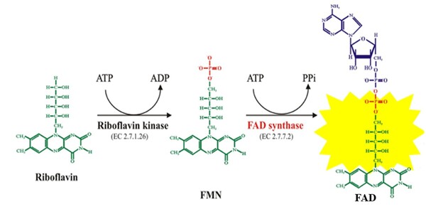 1872년 영국의 화학자 Alexander Wynter Blyth가 황록색 형광을 갖는 우유의 색소를 ‘lactochrome’이라 명하고 관찰하였는데, 후에 이 물질이 리보플라빈(Riboflavin, vitamin B2)으로 확인되었다.1922년, 독일의 Richard Kuhn과 오스트리아의 Theodor Wagner- Jaureg가 처음으로 리보플라빈을 발견하였고, 1933년 Kuhn과 Paul György가 처음으로 분리·정제하였으며, 1934년에 그 화학구조를 확인하여 “riboflavin(ribose + flavin)”이라
