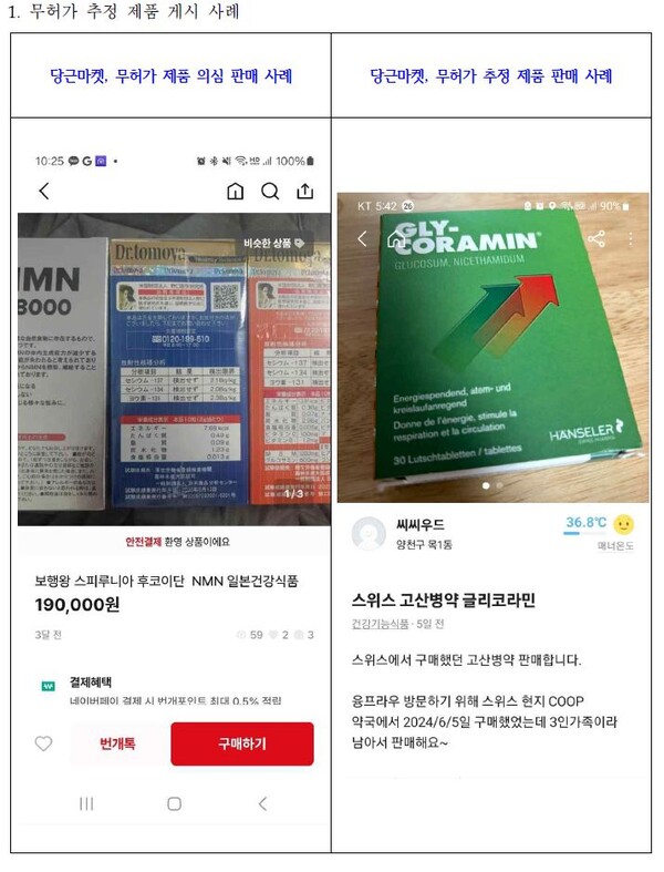 대한약사회(회장 권영희)는 8일, 식품의약품안전처(이하 식약처)가 건강기능식품 개인 간 온라인 거래 시범사업을 별다른 개선조치 없이 연장한 것에 대해 국민 건강과 건강기능식품 유통 질서를 심각하게 훼손하는 결정이라고 지적하면서, 해당 시범사업의 즉각적인 중단을 강력히 촉구한다고 밝혔다.대한약사회는 지난 1년간 지속적으로 모니터링을 한 결과, △무허가 추정 제품 판매 △포장지 개봉 판매 △냉장보관 제품 판매 △소비기한 6개월 이내 제품 판매 등 준수사항 위반사례가 빈번하게 발생했다고 지적했다.특히 당근마켓, 번개장터 등 중고거래 플랫