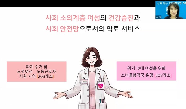서울시약사회(회장 김위학) 여약사위원회(부회장 김영진, 위원장 김채윤)는 지난 21일 온라인 플랫폼을 통해 ‘소녀돌봄약국 및 파지수거·노령여성 노동근로자 지원사업’ 참여약사 대상 사업설명회를 개최했다.이번 설명회는 서울시 양성평등 가족기금 공모사업의 일환으로 진행되며, 103명의 약사가 참여했다.이번 사업은 서울시 건강 사각지대에 놓은 취약 여성 계층을 대상으로 약사의 전문성과 정서적 돌봄 역량을 결합한 상담 및 의약품 지원 활동을 골자로 한다.파기수거 및 노령여성 노동근로자 지원사업은 파지 수거, 건물 청소 등 육체노동에 종사하는