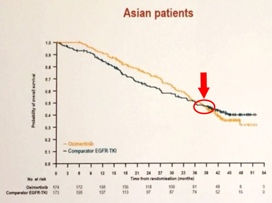 “통계적으로 의미는 있으나, 임상적으로 의미는 없다”. 국내 폐암 치료의 권위자인 국립암센터 김흥태 교수가 최근 ESMO에서 공개된 ‘타그리소(오시머티닙)’의 최종 생존율 데이터를 두고 내린 결론이다. 1차 치료제의 급여권 진입을 시도하고 있는 아스트라제네카 입장에선 충격파가 상당할 것으로 보이는 김 교수의 이 같은 발언에는 그만한 이유가 있다. 연구에서 피험자의 절반 이상(62%)을 차지하는 아시아인의 생존율 데이터가 임상적으로 의미를 부여하기엔 역부족인 데다, 전체생존기간 역시 1차 치료제로 막대한 돈을 지불할 만큼 비용-효과적