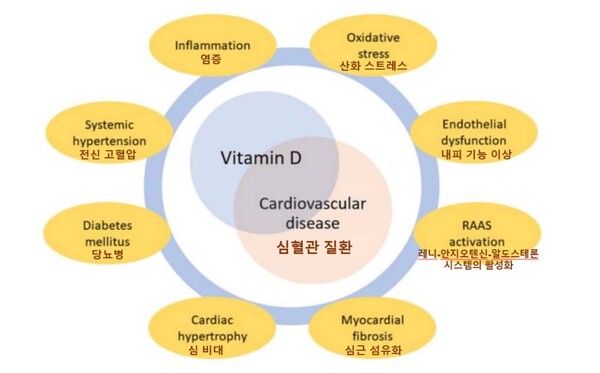 최근(9월 23일), 비타민 D 보충 기간은 체질량 지수(BMI)에 따라 심혈관 질환 관련 염증의 조절에 관여한다는 연구 결과(Duration of vitamin D supplementation modulates the association between cardiovascular disease and high-sensitivity C-reactive protein across body mass index strata)가 Steroids 온라인판에 발표되었다.Theocharis Koufakis 등은 총 88명, 즉 정상 BMI(25