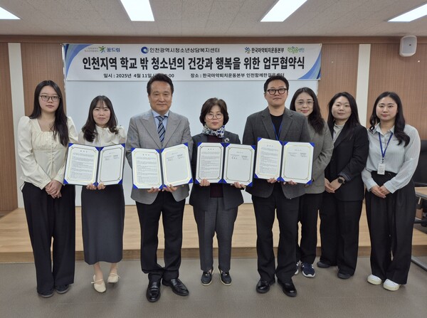 한국마약퇴치운동본부 인천함께한걸음센터(지부장 최병원∣센터장 최서연)는 11일, 인천광역시청소년상담복지센터(센터장 김보기), 인천광역시학교밖청소년지원센터(센터장 김보기)와 함께 인천지역 청소년 및 학교 밖 청소년의 건강과 행복을 위한 업무협약을 체결했다.세 기관은 이번 업무협약을 통해 인천지역 청소년의 전인적 성장과 건강한 사회 적응을 지원하기 위한 다양한 협력 사업을 공동 추진하기로 했다. 청소년 상담 사례를 바탕으로 한 실무자 대상 마약류 및 약물 오남용 예방 교육이 실시될 예정이며, 취약계층 청소년에게 필요한 서비스가 적시에 연